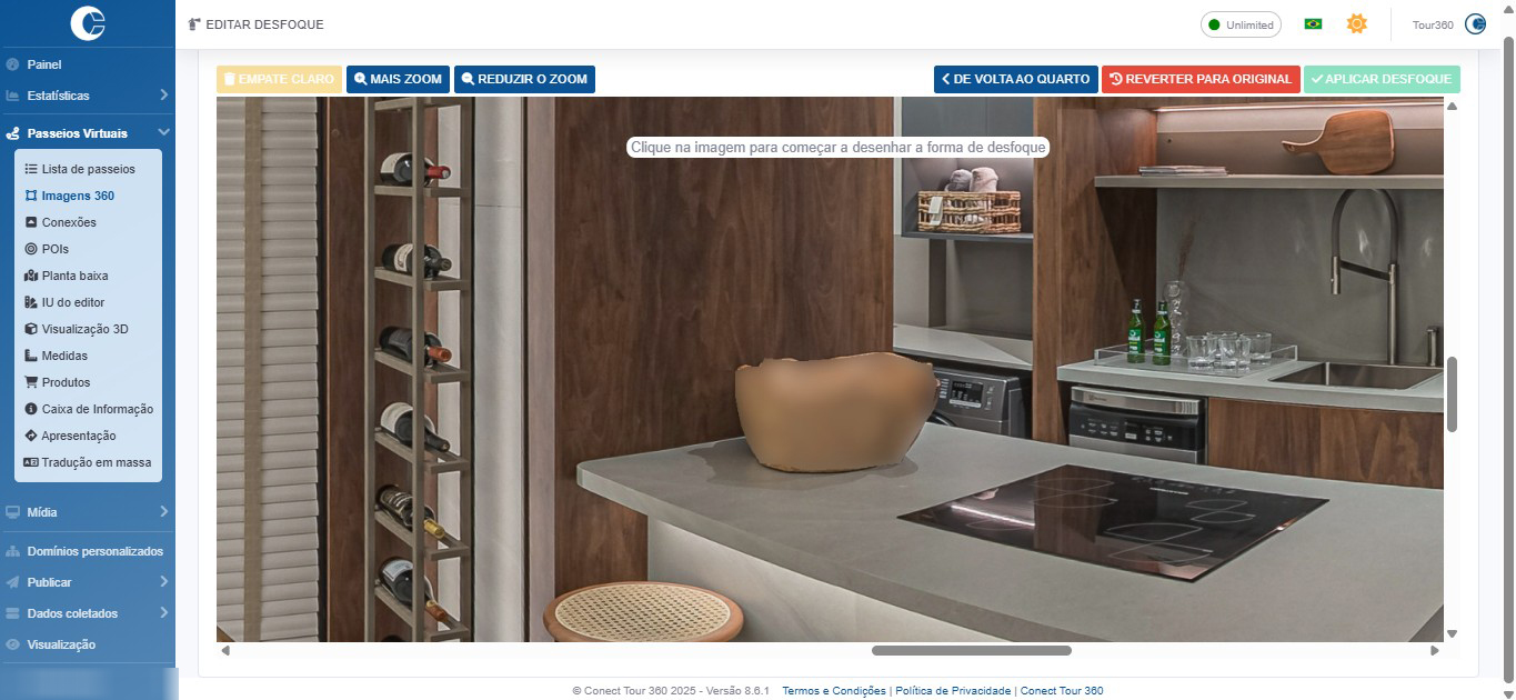 Para desfocar uma parte do panorama, clique no botão Editar desfoque .