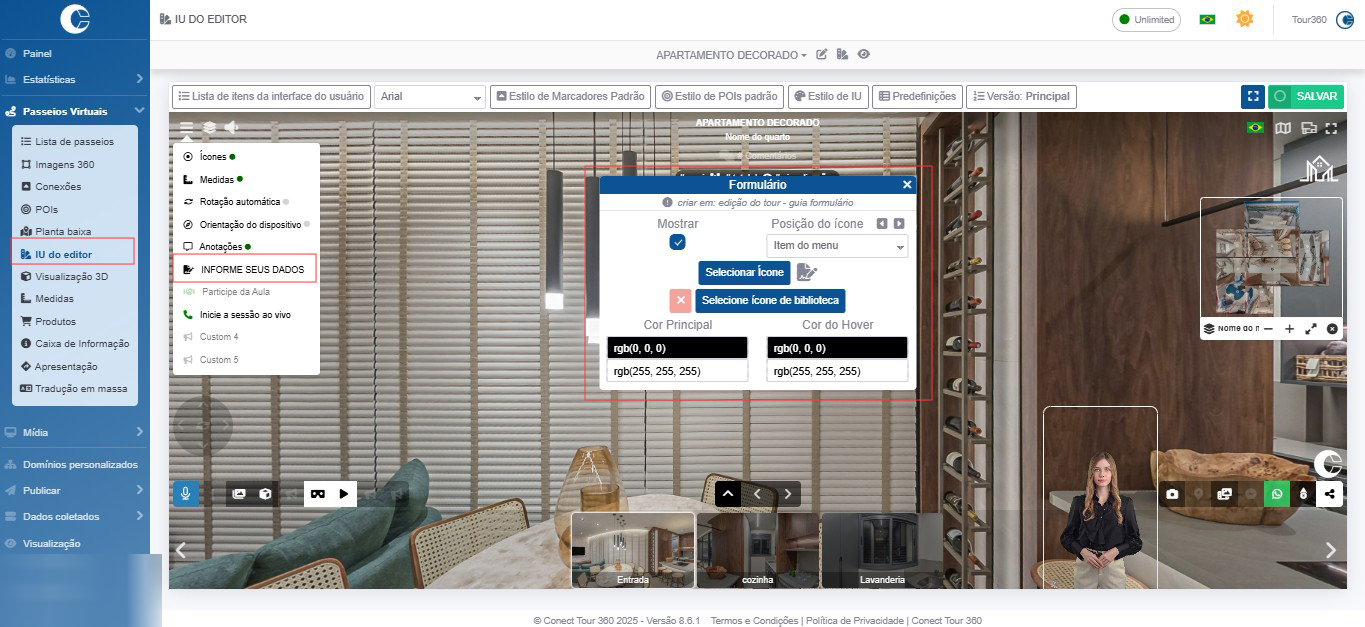 Selecione Passeios virtuais -> Editor UI no menu lateral.