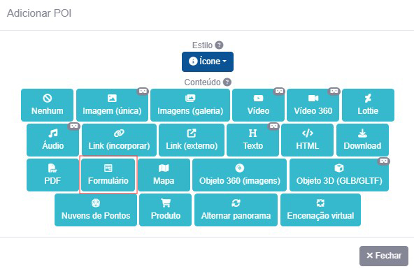 Selecione o estilo do POI e clique em Formulário como conteúdo.