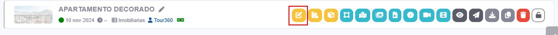 Selecione Passeios virtuais -> Listar passeios no menu lateral e clique no botão Editar no passeio desejado.