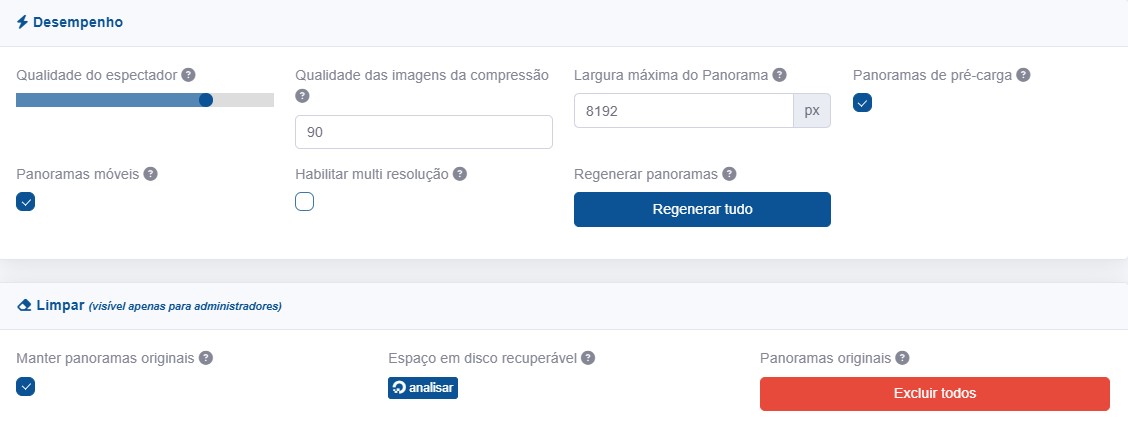 •Pré-carregar panoramas . Se marcado, todos os cômodos serão pré-carregados em segundo plano.