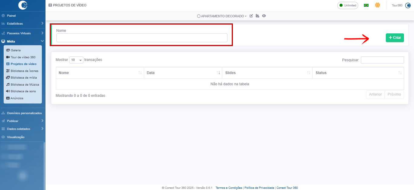 Selecione Mídia -> Projetos de vídeo no menu lateral.