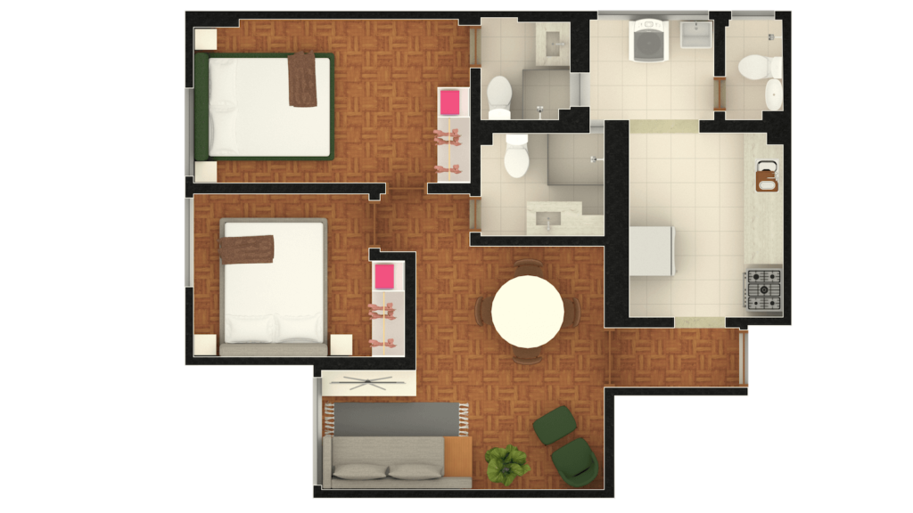 Um tour virtual 360° é formado por fotos em 360° conectadas entre si, permitindo que o visitante navegue de forma interativa pelos ambientes.