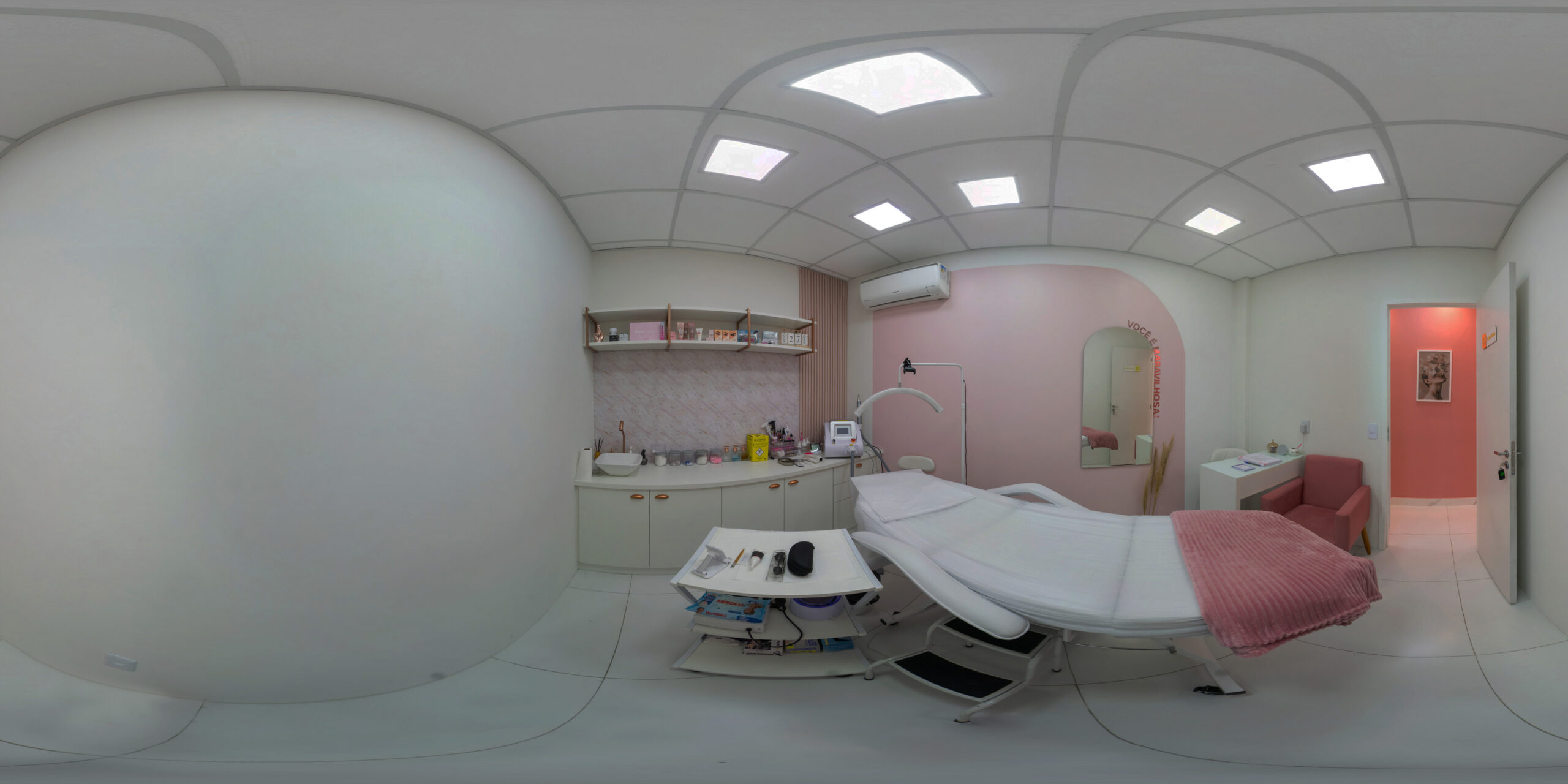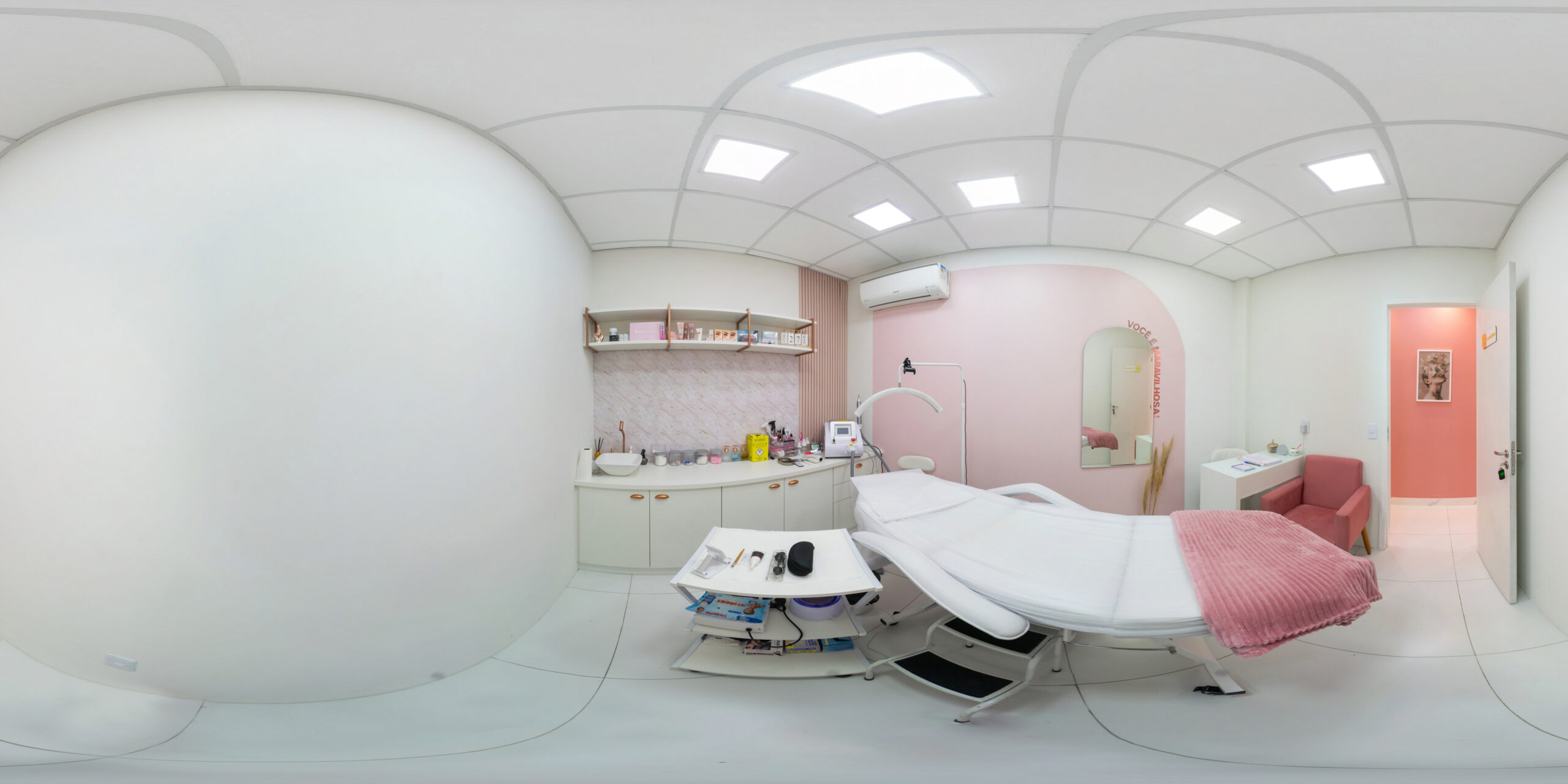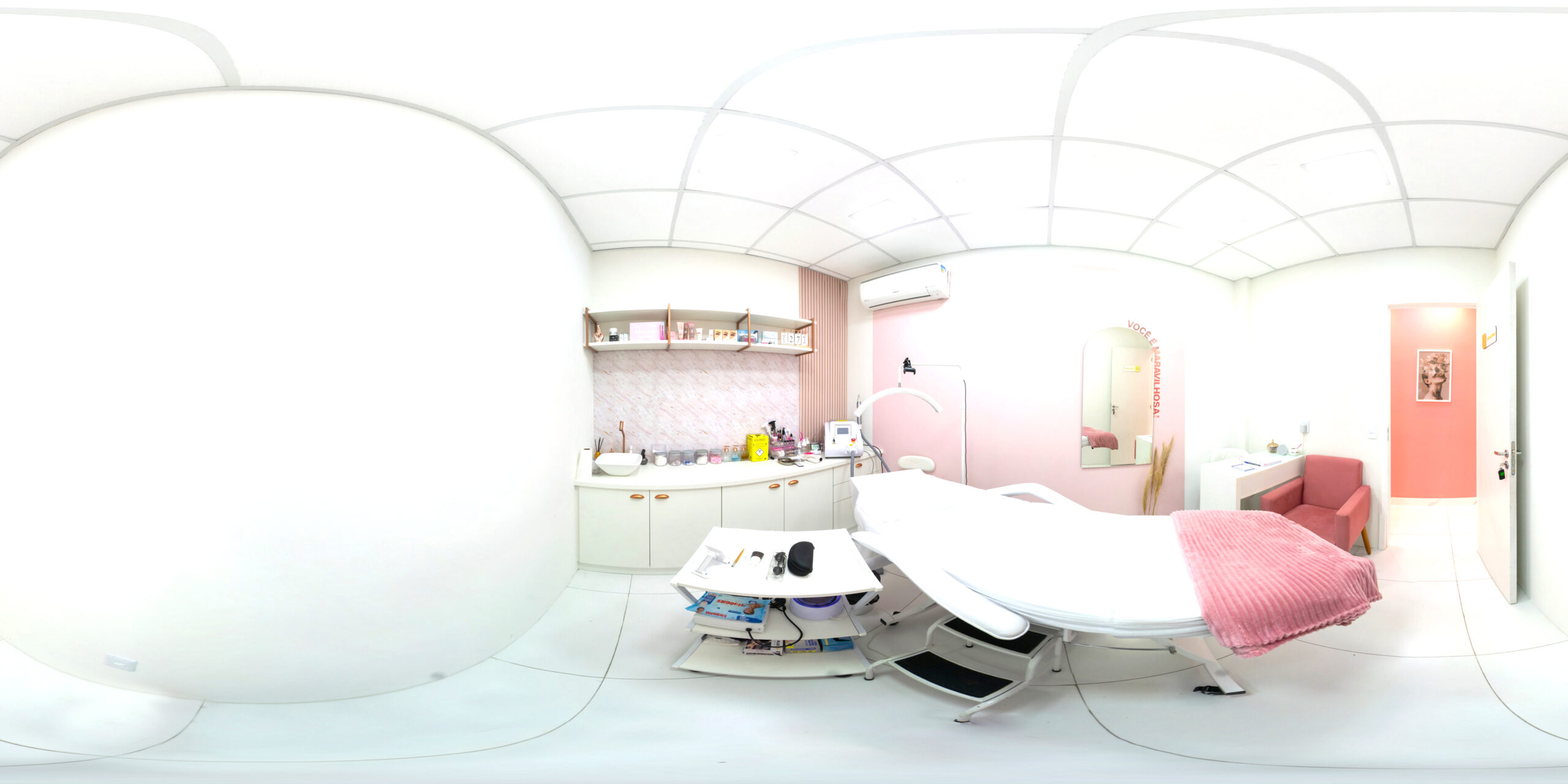 Em muitos casos, pequenos movimentos já resolvem o problema. Nosso fotógrafo, por exemplo, apenas reposicionou a câmera para garantir que o espaço ficasse visível de forma clara. E não se preocupe: sua foto continuará sendo 360° — completa e imersiva.