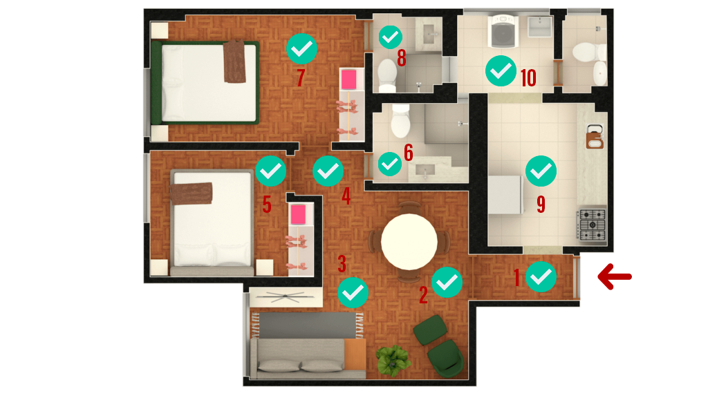Na fotografia 360°, seguir apenas a lógica de “começar pela entrada” pode não ser o ideal. É preciso observar paredes próximas e obstáculos que podem comprometer a visualização do próximo ambiente dentro do seu mapa mental.