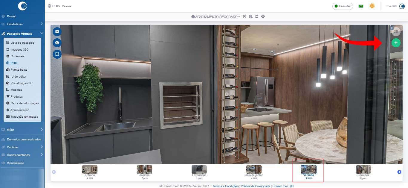 Selecione Passeios virtuais -> POIs no menu lateral.