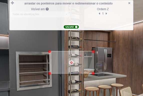 Um retângulo será adicionado onde você pode inserir o conteúdo a ser incorporado: você pode arrastar os 4 ponteiros para moldar a área do POI.
