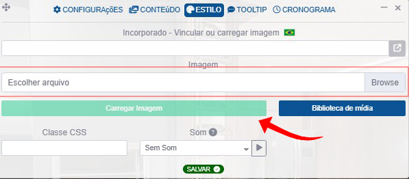 Se você optou por incorporar uma imagem, clique no botão Procurar , carregue a imagem do seu disco e clique em Carregar Imagem para iniciar o upload. Quando terminar, clique no botão Salvar .