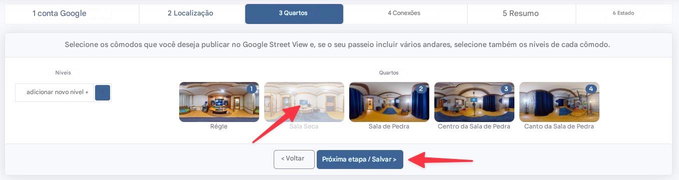 Alterne as salas que você deseja publicar clicando na sala correspondente.