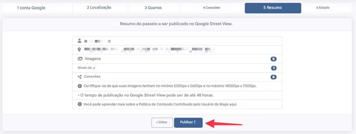 Clique no botão Publicar com o logotipo do Google Street View.