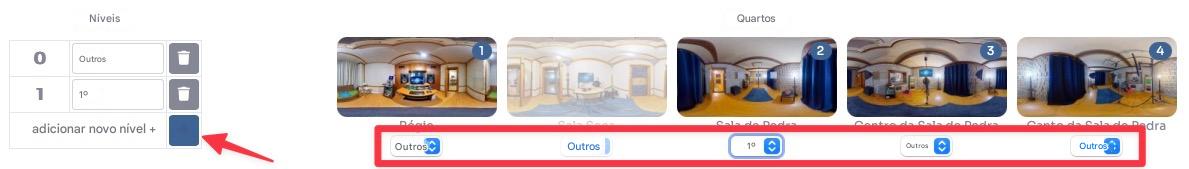 (opcional) Se seus cômodos estiverem em níveis diferentes, clique no botão + para adicionar os níveis . Então atribua a cada cômodo o nível correto.